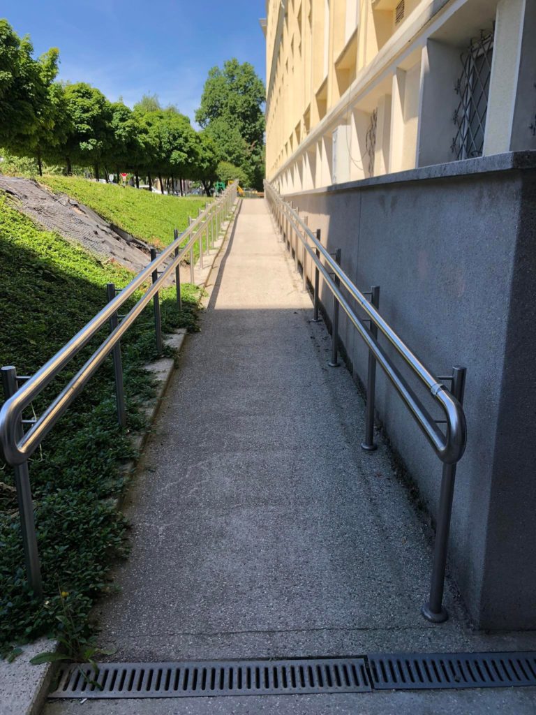 Schody nie posiadają specjalnych udogodnień dla osób z niepełnosprawnościami.