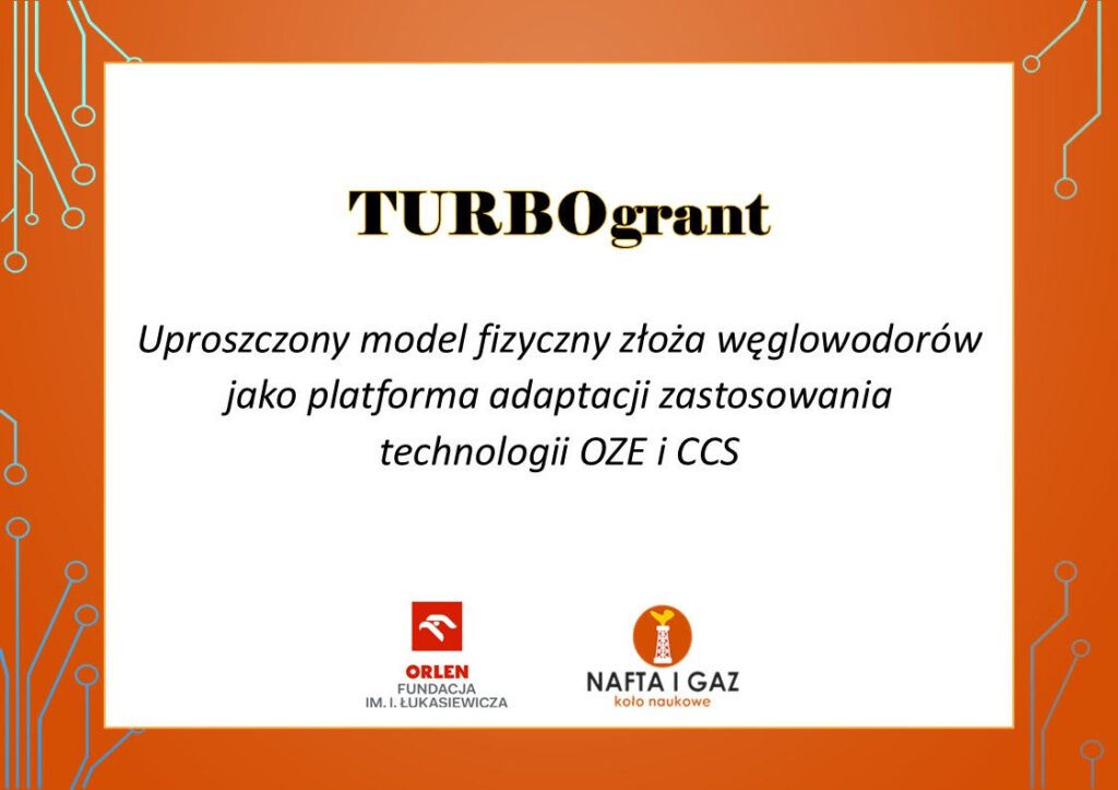 Mamy powód do dumy! Studenckie Koło Naukowe „Nafta i Gaz” podpisało umowę na realizację projektu pt. „Uproszczony model fizyczny złoża węglowodorów jako platforma adaptacji zastosowania technologii OZE i CCS”. Projekt uzyskał dofinansowanie Fundacji ORLEN im. Ignacego Łukasiewicza w ramach programu TURBOGRANT – gratulujemy i trzymamy kciuki za jego realizację!